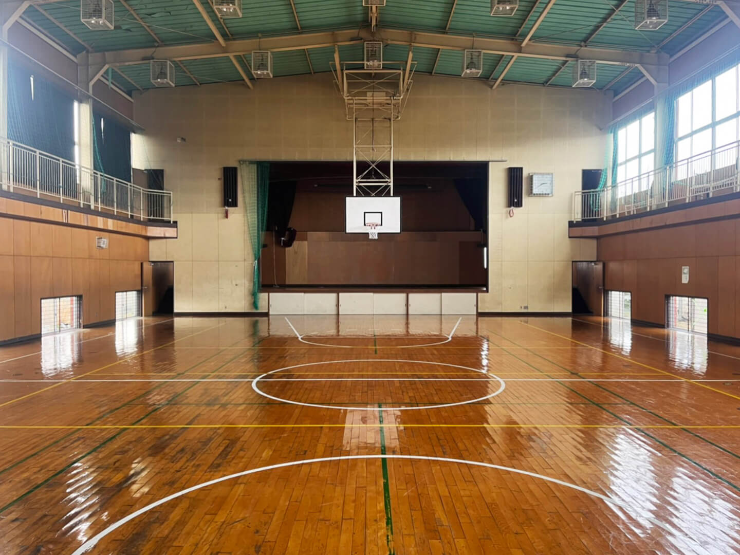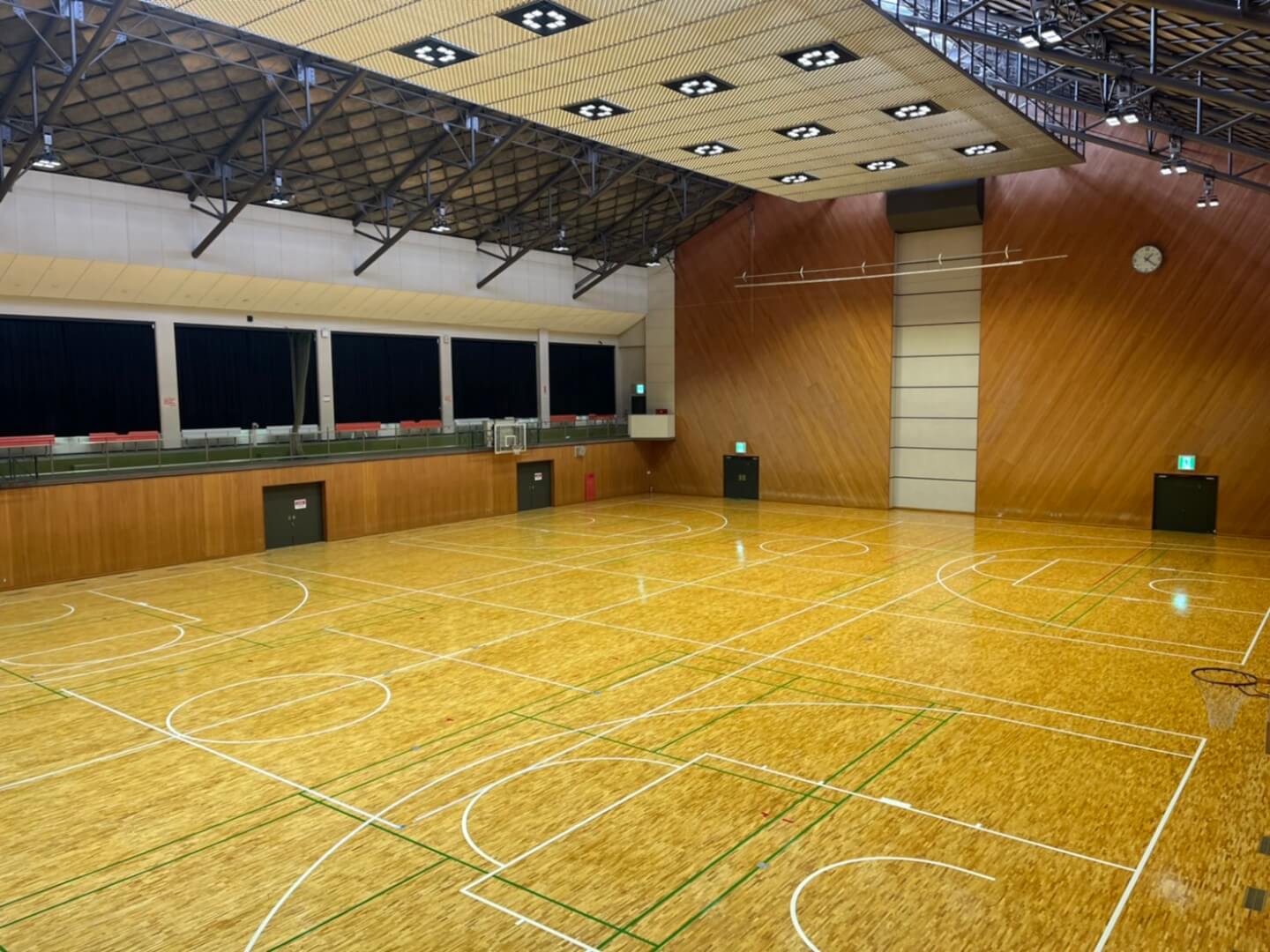 42m×30m(バレーボール3面、バスケットボール2面、バドミントンコート4面)
